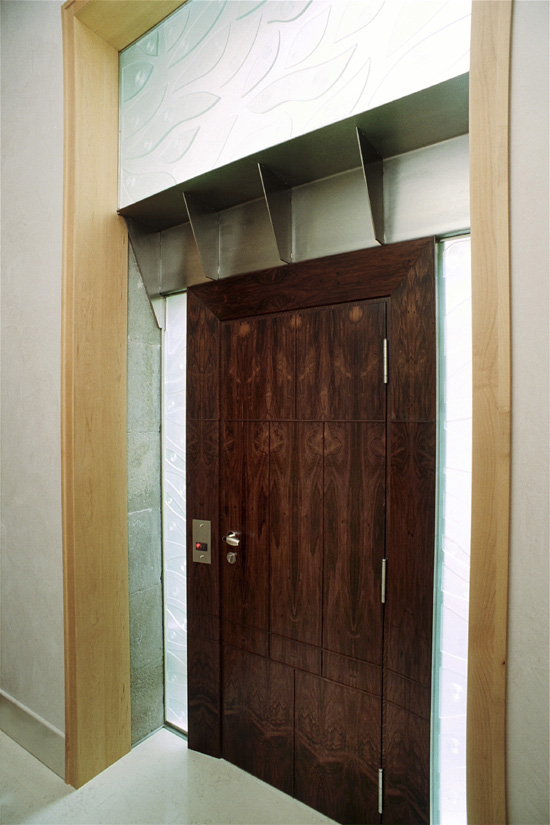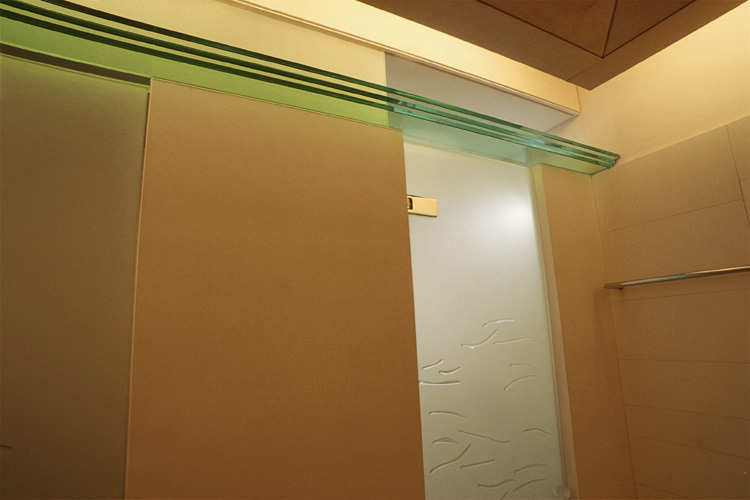 Diseño y realización de las vidrieras para el ascensor privado, puertas de ducha y baños y elementos decorativos.